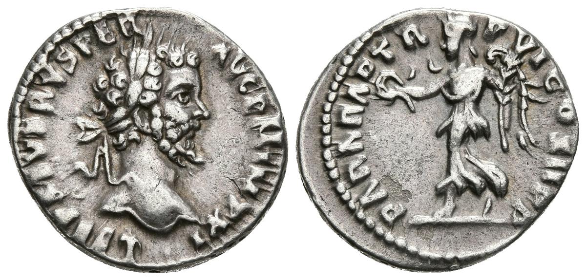 SEPTIMIO SEVERO. Denario. 198 d.C. Laodicea. A/ Busto laureado a derecha. L SEPT SEVERVS PER AVG P M IMP XI. R/ Victoria avanzando a izquierda portando corona y palma. PAR AR AD TR P VI COS II P P. RIC 158; Cohen 361. Ar. 3,15g. EBC-/MBC+. Escasa.