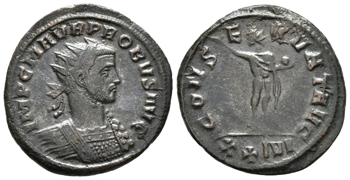 PROBO. Antoniniano. 276-282 d.C. Siscia. A/ Busto radiado con coraza a derecha. IMP C M AVR PROBVS AVG. R/ Sol estante a izquierda con mano alzada y globo. CONSERVAT AVG, en exergo XXIVI. RIC 671. Ae. 4,02g. MBC+.