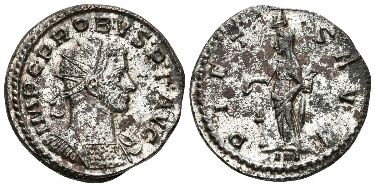 PROBO. Antoniniano. 276-282 d.C. Lugdunum. A/ Busto radiado con coraza a derecha. IMP C PROBVS P•F•AVG. R/ Pietas estante a izquierda realizando sacrificio con pátera sobre altar y sosteniendo caja de incienso. PIETAS AVG, en exergo III. RIC 96; Cohen 737; Bastien 359. Ae. 4,37g. Conserva el plateado original. EBC.