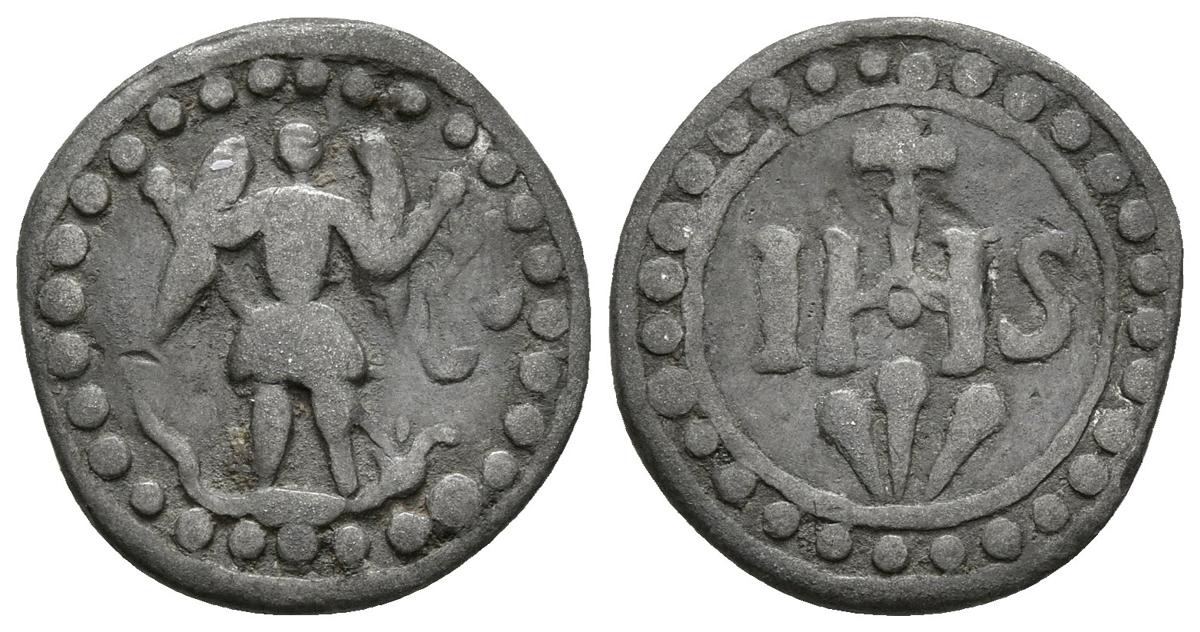 SAN MIQUEL. Plomo. Palma. A/ San Miguel de frente. R/ JHS rematado por cruz. Cru.VS 2422. Pb. 1,67g. MBC.