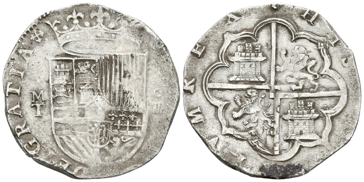 FELIPE II. 4 Reales. S/D. Toledo M. Cruz de Calatrava al terminar la leyenda. Cal-411. Ar. 13,68g. MBC-. Rara.