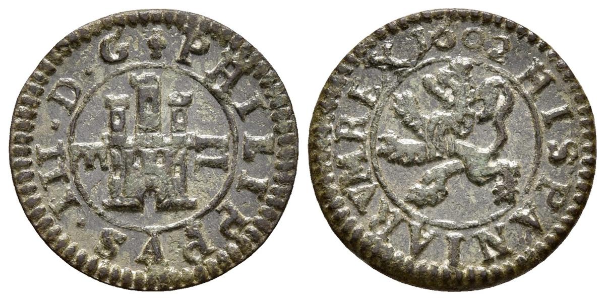FELIPE III. 2 Maravedís. 1602. Segovia. Cal-834; J.S. D-259. Ae. 1,26g. MBC+.