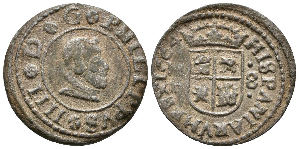 FELIPE IV. 8 Maravedís. 1664. Madrid S. Cal-1435; J.S. M-428. Ae. 2,14g. MBC+.