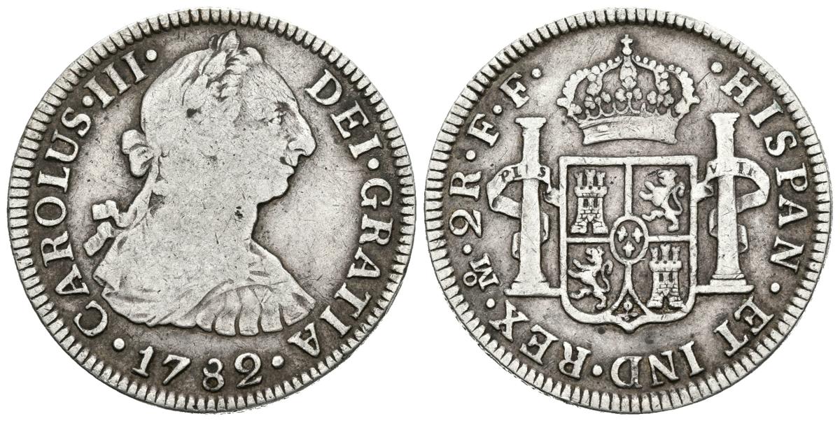 CARLOS III. 2 Reales. 1782. México FF. Cal-1349. Ar. 6,63g. MBC-/MBC.