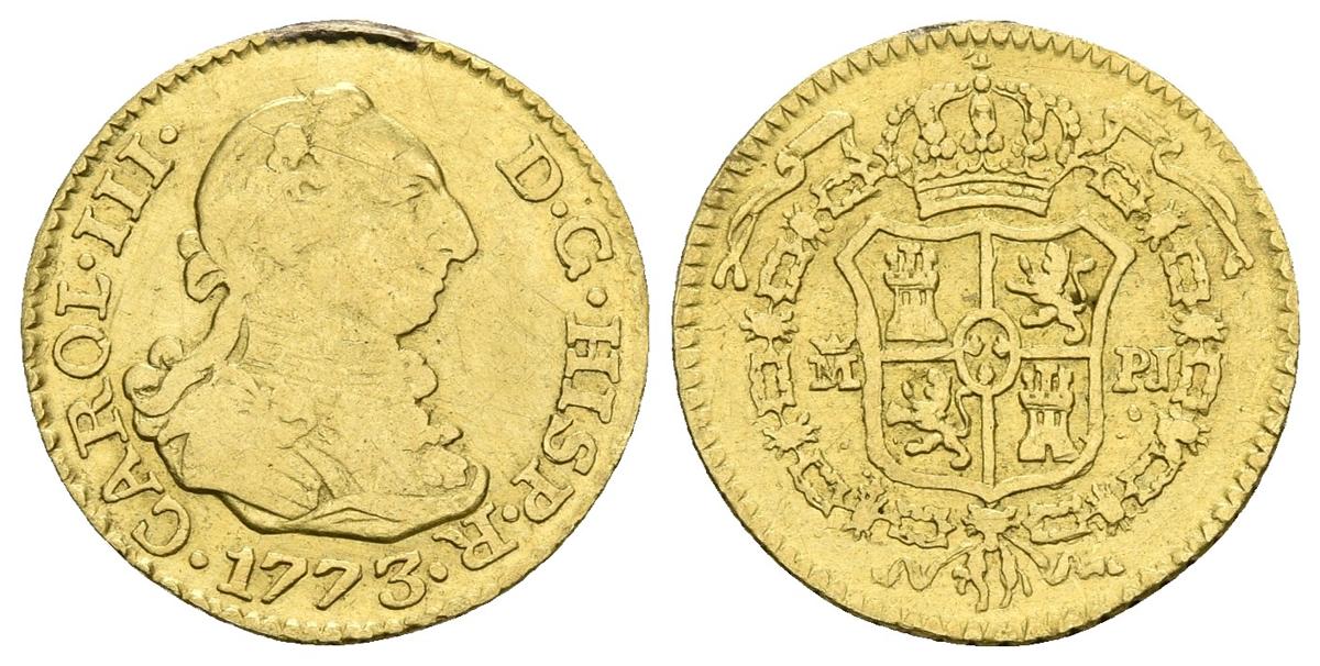 CARLOS III. 1/2 Escudo. 1773. Madrid PJ. Cal-767. Au. 1,73g. Soldadura en el canto. BC+.