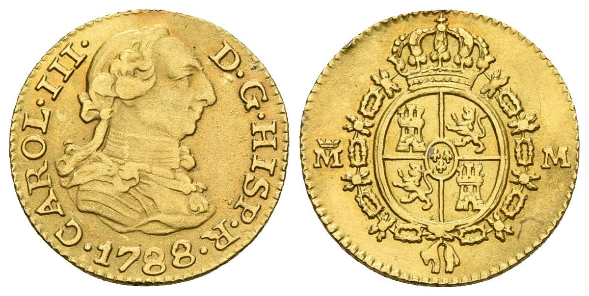 CARLOS III. 1/2 Escudo. 1788. Madrid M. Cal-781. Au. 1,73g. Soldadura cuidadosamente reparada en el canto. MBC+.