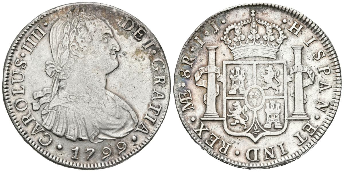 CARLOS IV. 8 Reales. 1799. Lima IJ. Cal-654. Ar. 27,39g. MBC.
