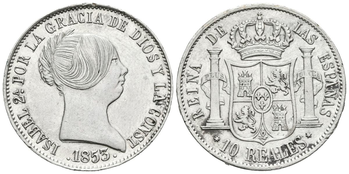 ISABEL II. 10 Reales. 1853. Madrid. Cal-223. Ar. 12,96g. MBC+/MBC.