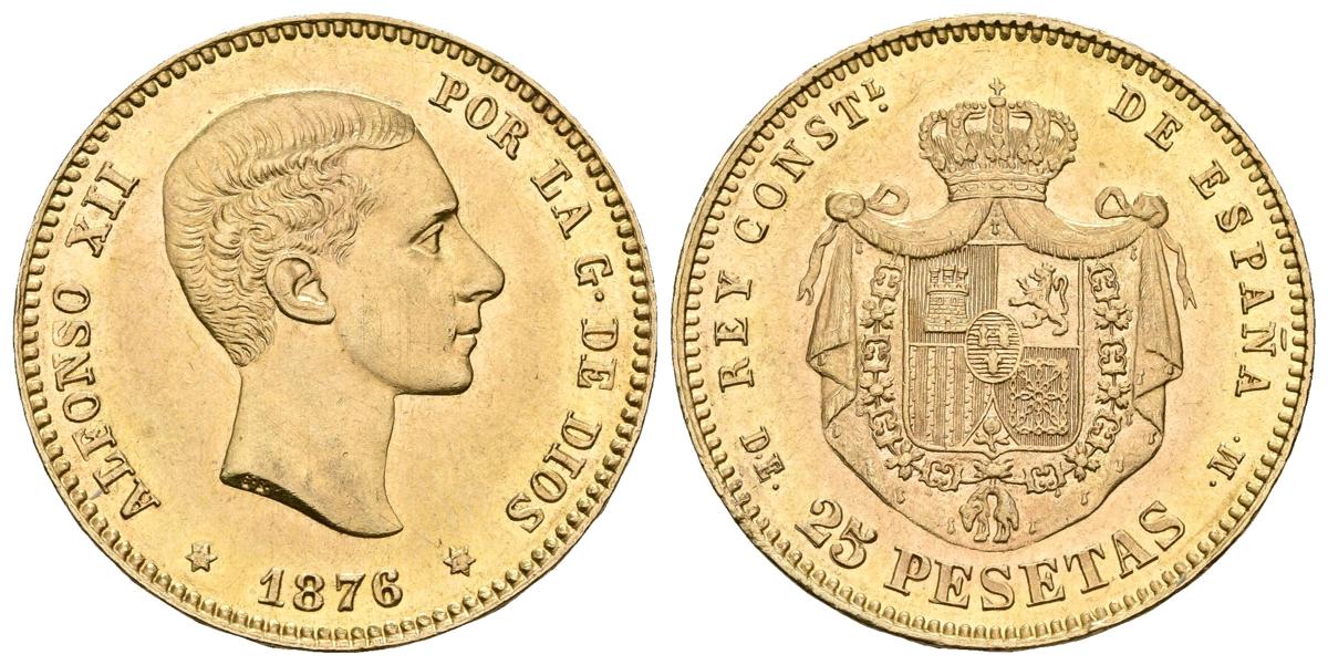 ALFONSO XII. 25 Pesetas. 1876 *1_-7_ (Fallo en las estrellas). Madrid DEM. Cal-1. Au. 8,06g. EBC/EBC+.
