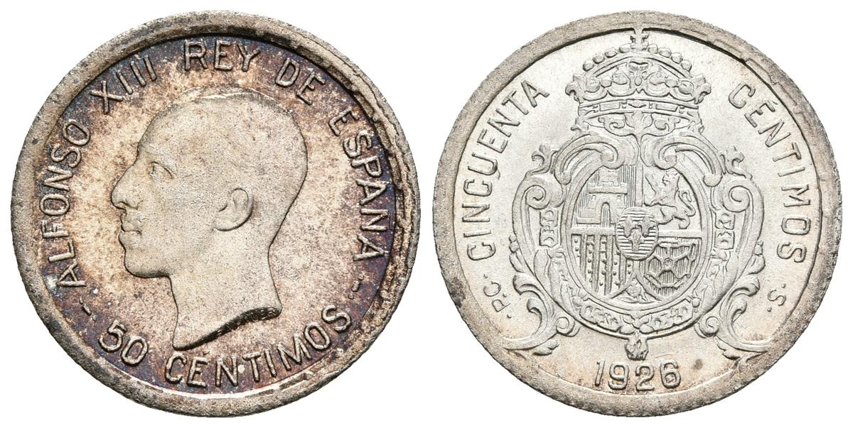 ALFONSO XIII. 50 Céntimos. 1926. Madrid PCS. Cal-64. Ar. 2,38g. Brillo original. Bonita pátina en anverso. SC.