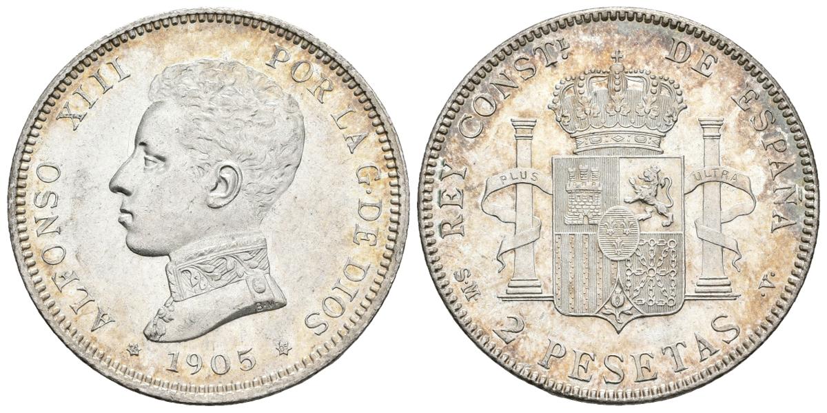 ALFONSO XIII. 2 Pesetas. 1905 *19-05. Madrid SMV. Cal-34. Ar. 9,96g. EBC.