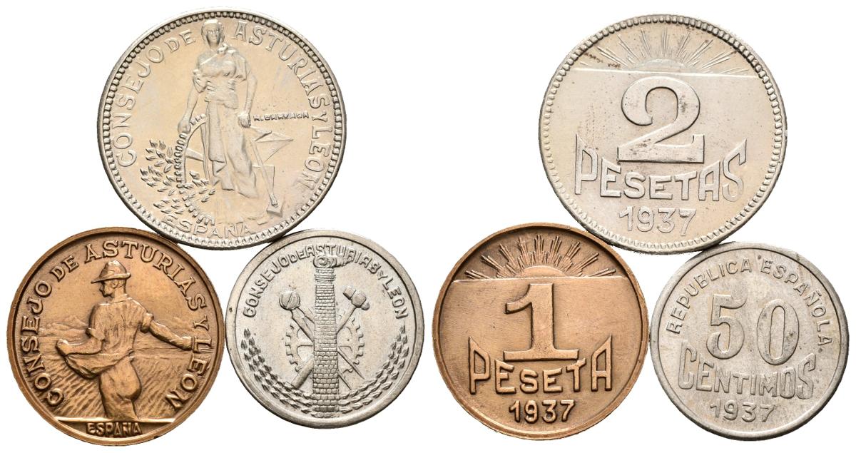 ASTURIAS Y LEON. Serie completa (50 cts, 1 Pta y 2 Ptas). 1937. Cal-4. Cu-Ni. EBC.