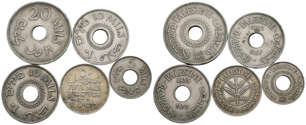 PALESTINA. 5 Mils 1939, 10 Mils 1942 y 1935, 20 Mils 1935 y 50 Mils 1942. Cu/Ni. MBC/EBC.