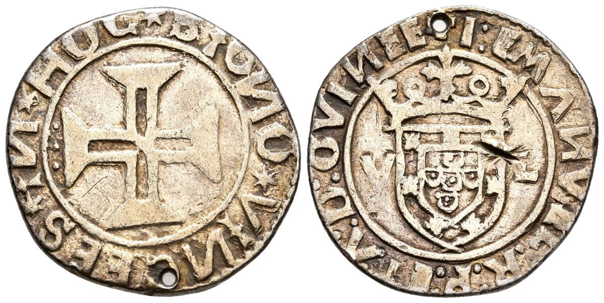 PORTUGAL. Manuel I. Tostao. (1495-1521). Lisboa. Gomes 50.04. Ar. 7,75g. Sobredorada y perforación. MBC.