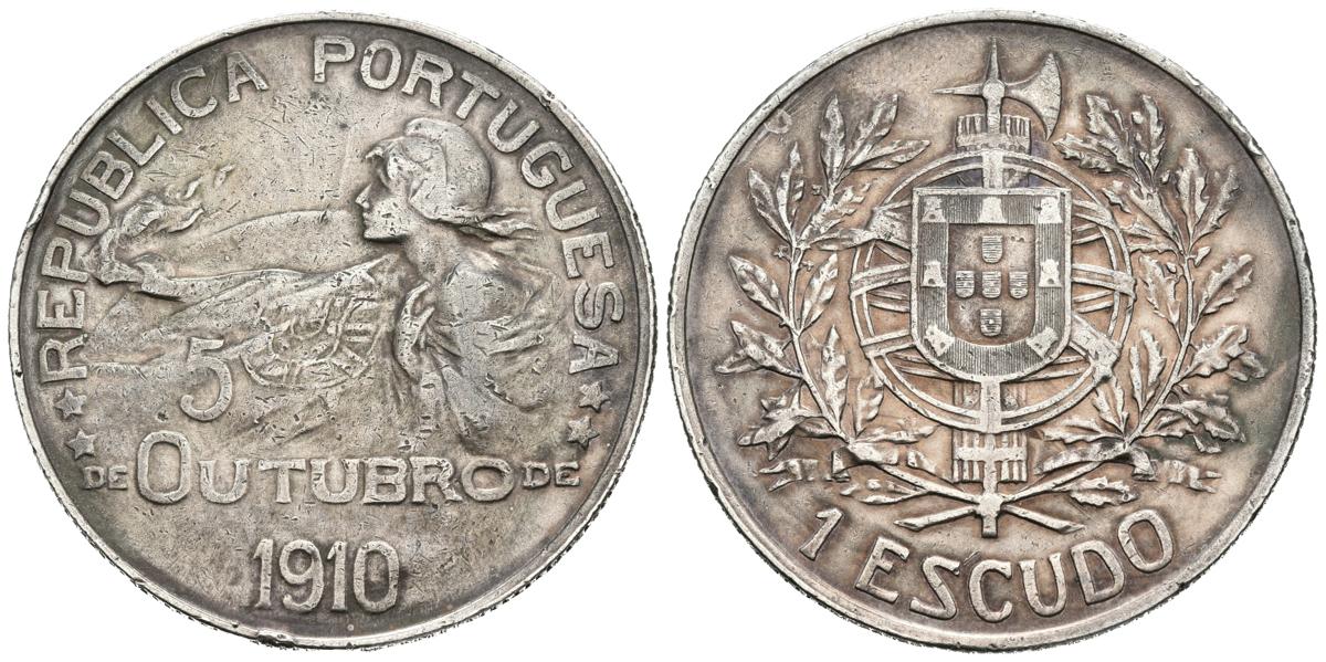 PORTUGAL. 1 Escudo. 1910. Km#560; Gomes 22.01. Ar. 25,15g. Pátina. Marquitas. MBC.