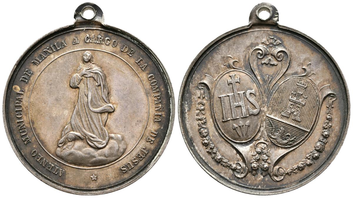 ATENEO DE MANILA. A cargo de la compañía de Jesús. Ar. 13,13g. Preciosa pátina. EBC+. Rara.Ex Aureo & Calicó 08-11-2017 Nº1458.