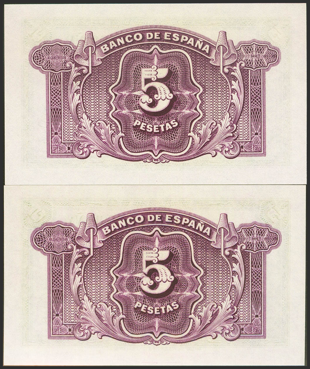 5 Pesetas. 1935. Silver Certificate. Correlative couple. Series J. (Edifil 2023: 363b). It retains all the original finish. Uncirculated.