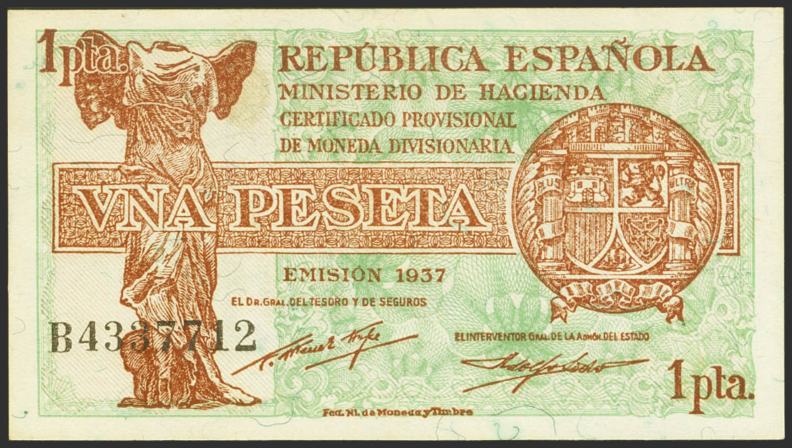 English 1 Peseta. 1937. Series B. (Edifil 2023: 392). Original sizing. Almost Uncirculated.