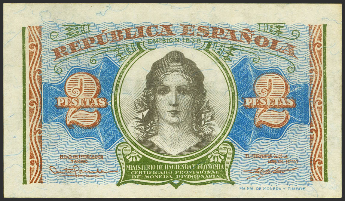 2 Pesetas. 1937. Ministry of Finance. Series B. (Edifil 2023: 393). Original sizing. Uncirculated.