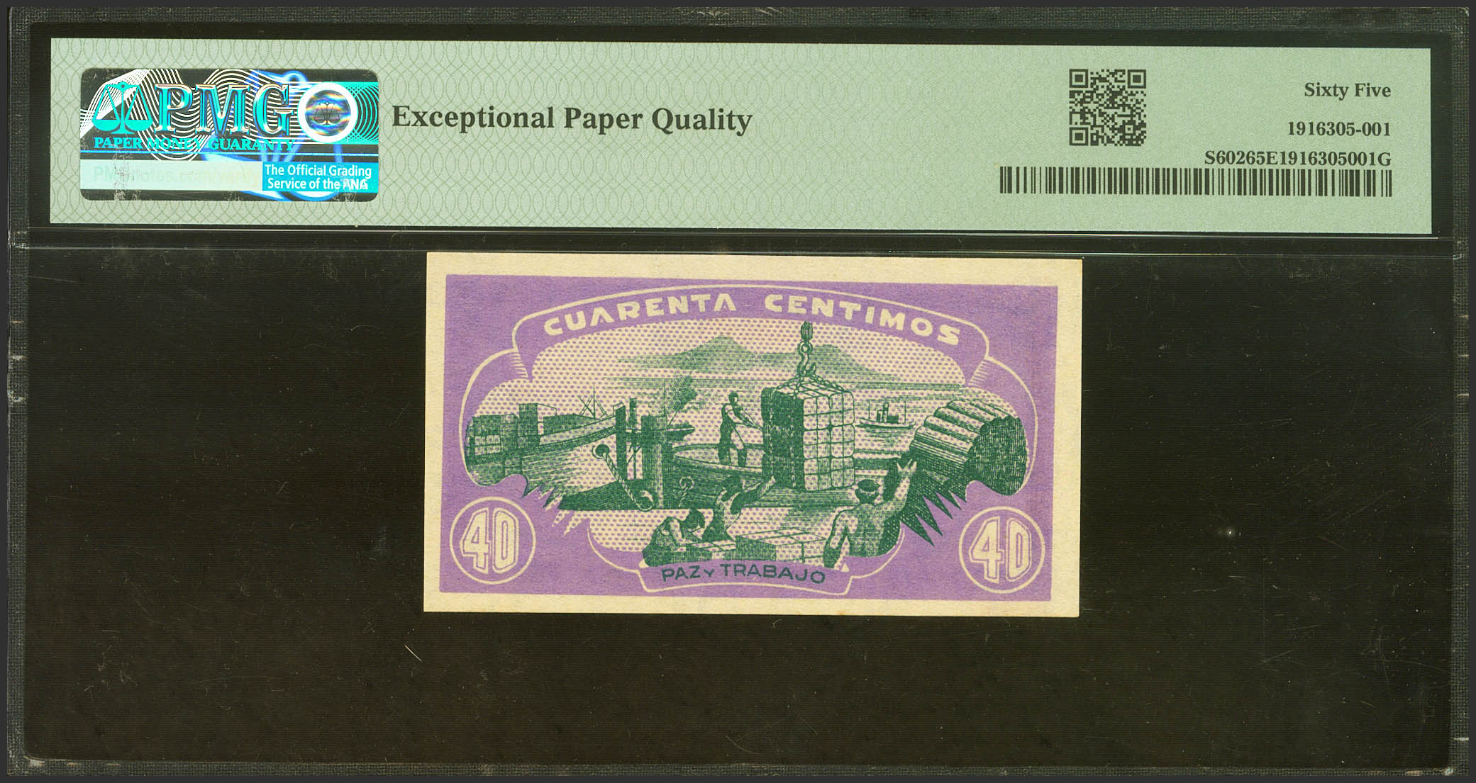 English 40 Cents. 1937. Asturias and León. No serie. (Edifil 2023: 395, Pick: S602). Original sizing. Uncirculated. PMG65EPQ package.