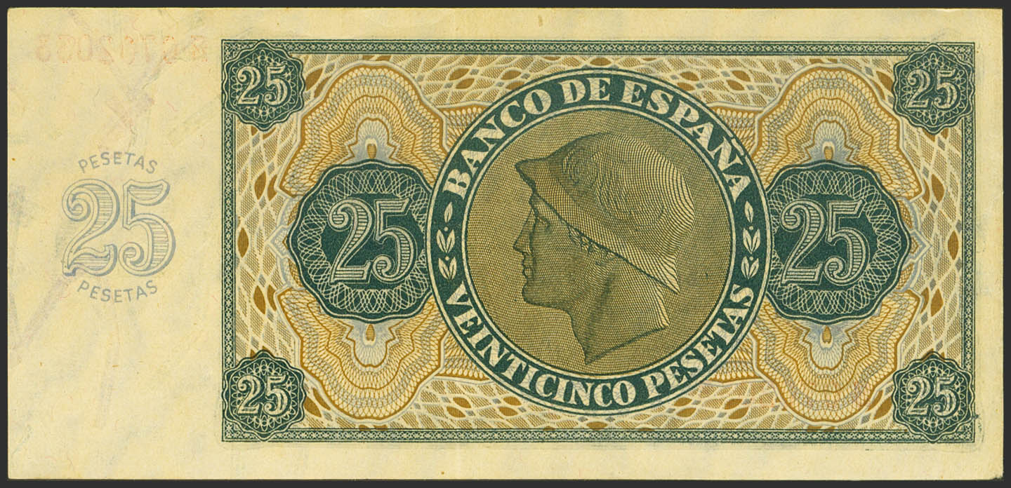 25 Pesetas. November 21, 1936. Series S, last series issued. (Edifil 2023: 419b). It retains much of its original finish. EBC++.