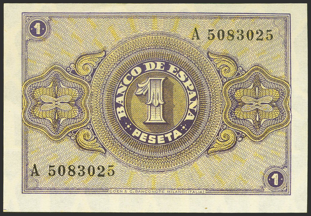 1 Pesetas. February 28, 1938. Series A. (Edifil 2023: 427). Unusual, original sizing. Uncirculated.