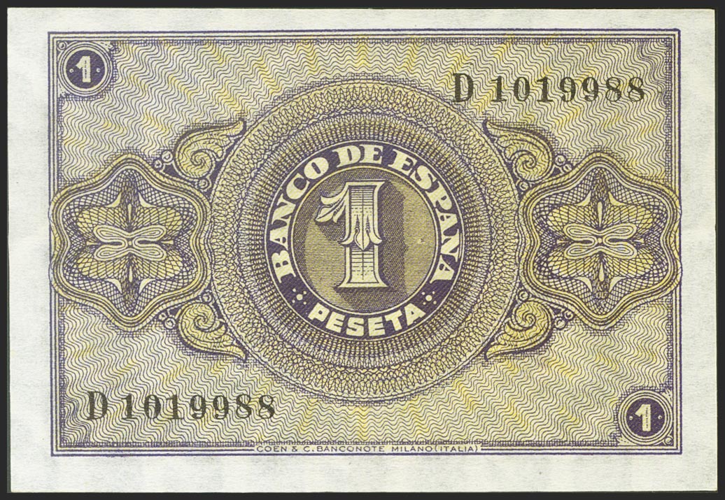 1 Peseta. February 28, 1938. Series D. (Edifil 2021: 427a). Original sizing. Uncirculated.