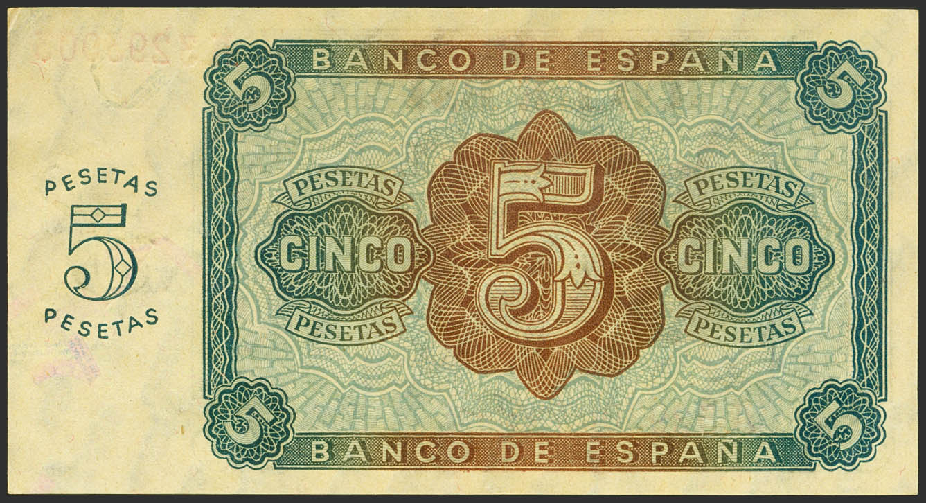 English 5 Pesetas. August 10, 1938. Series A. (Edifil 2021: 435). It retains all its original finish. EBC++.