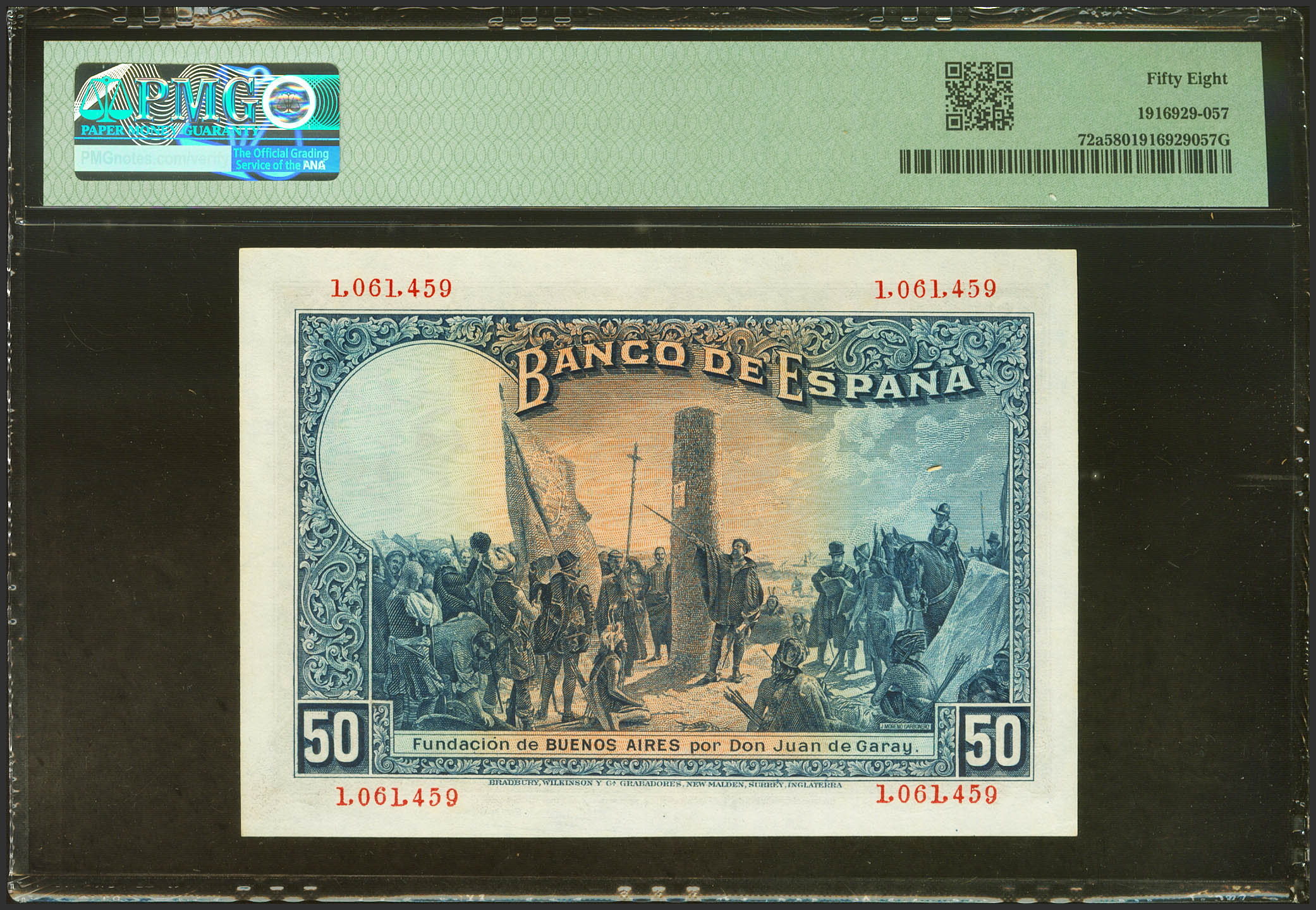 50 Pesetas. May 17, 1927. No series. (Edifil 2023: 326, Pick: 72a). Rare in this quality. EBC++. PMG58 encapsulation.