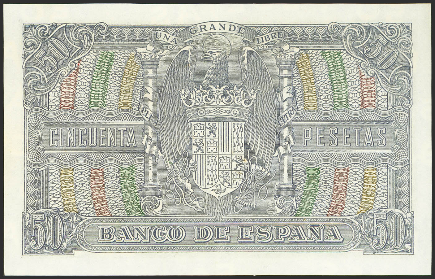 50 Pesetas. January 9, 1940. Series D. (Edifil 2023: 437a). It retains much of its original finish. EBC++.