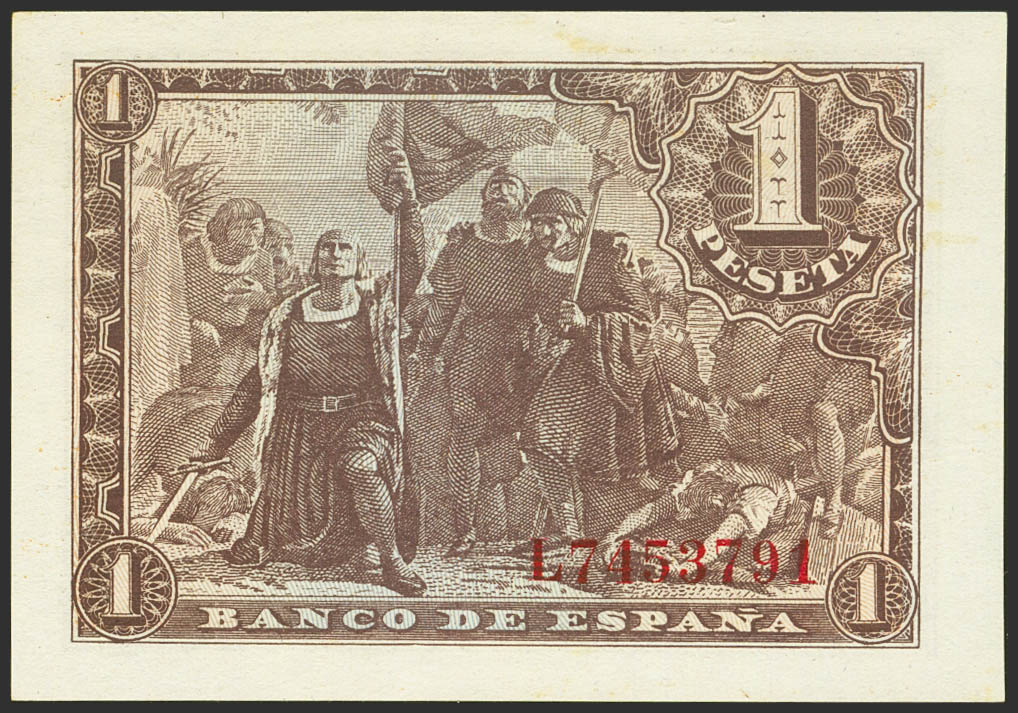 1 Peseta. May 21, 1943. Series L. (Edifil 2021: 447a). Original sizing. Uncirculated.