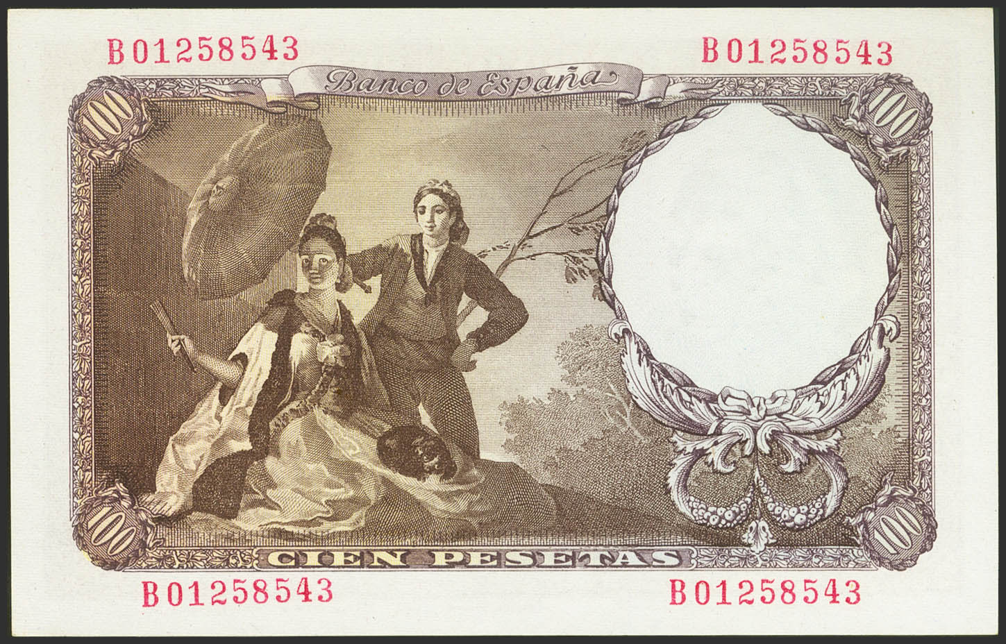 100 Pesetas. February 19, 1946. Series B, last series issued. (Edifil 2023: 451b). Original sizing, exceptional quality. Uncirculated.