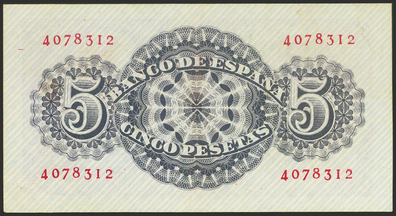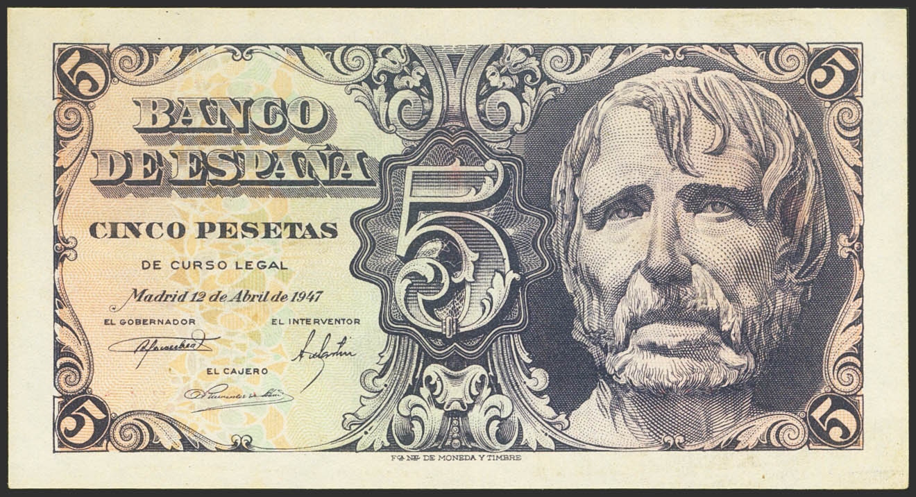 English 5 Pesetas. April 12, 1947. No series. (Edifil 2023: 454). It presents much of its original finish. Extremely Fine.