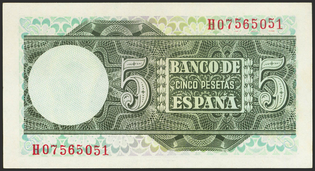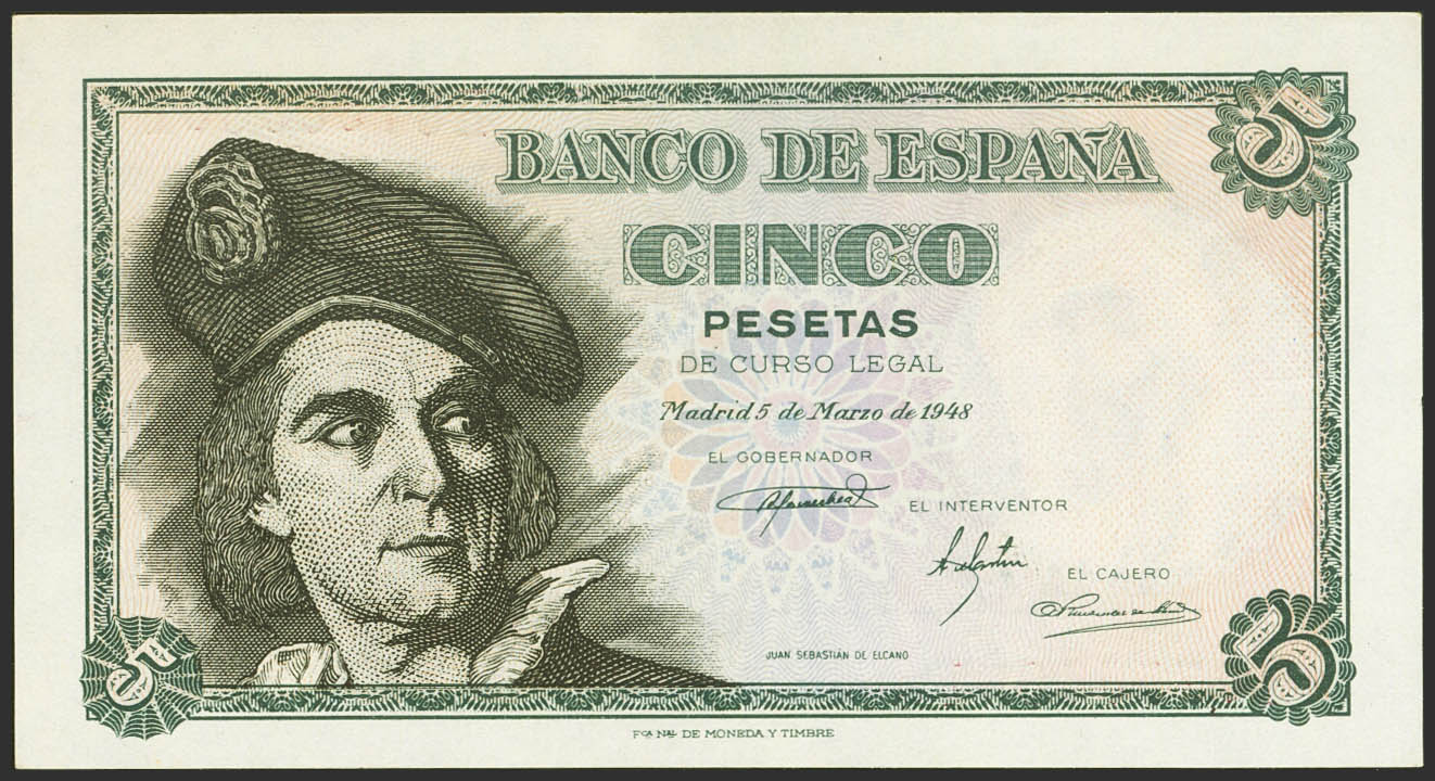 5 Pesetas. March 15, 1948. Series H. (Edifil 2021: 455a). Original sizing. Uncirculated.