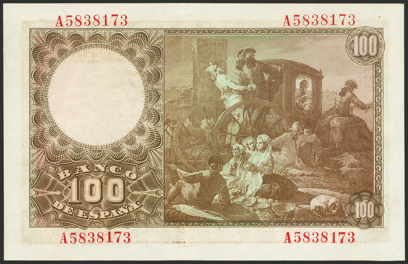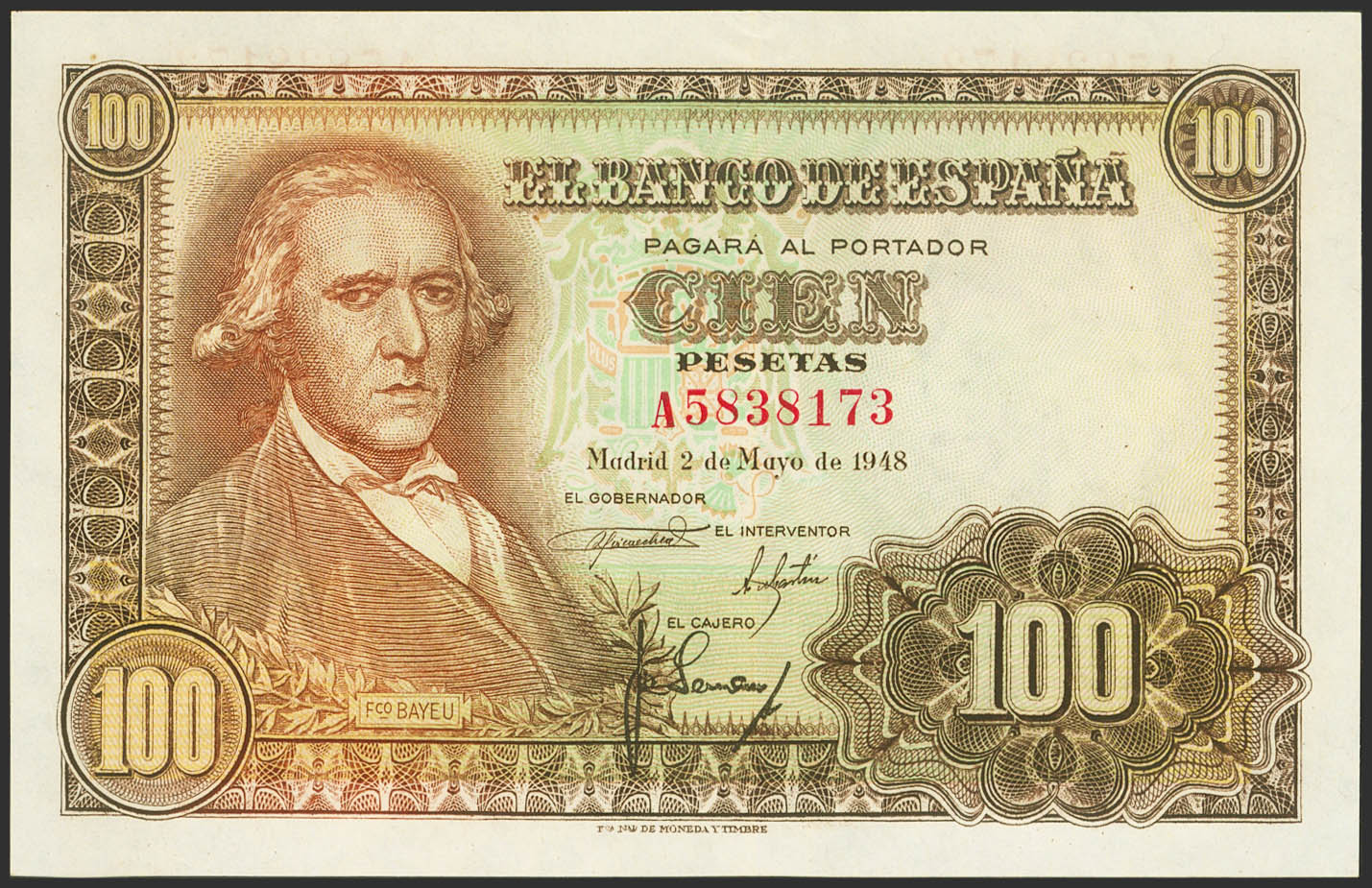 100 Pesetas. May 2, 1948. Series A. (Edifil 2023: 456a). It retains all its original finish. Uncirculated.