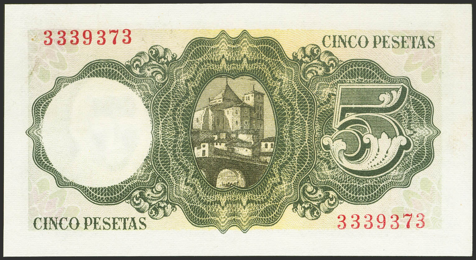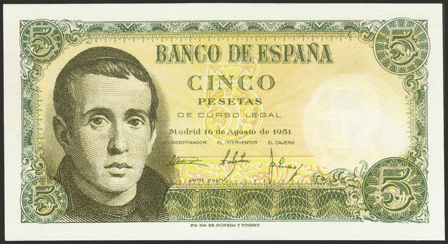 5 Pesetas. August 16, 1951. No series. (Edifil 2021: 459). Original sizing. Uncirculated.