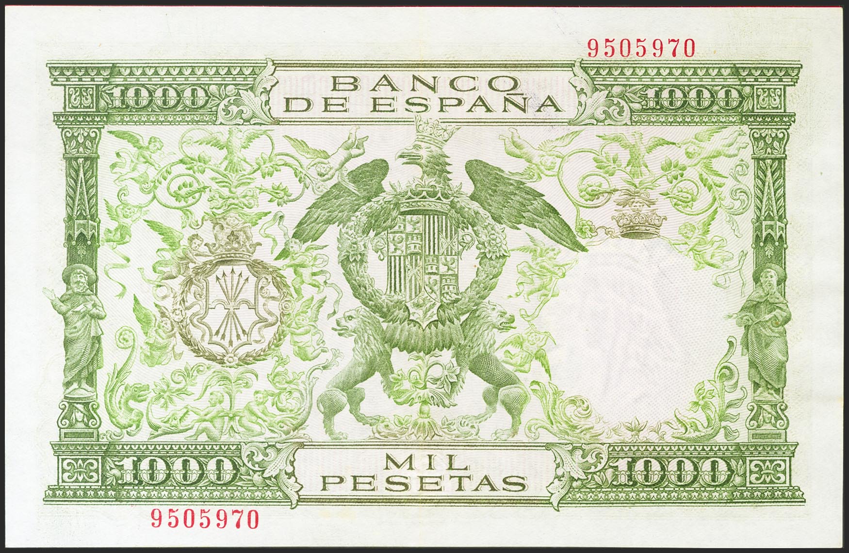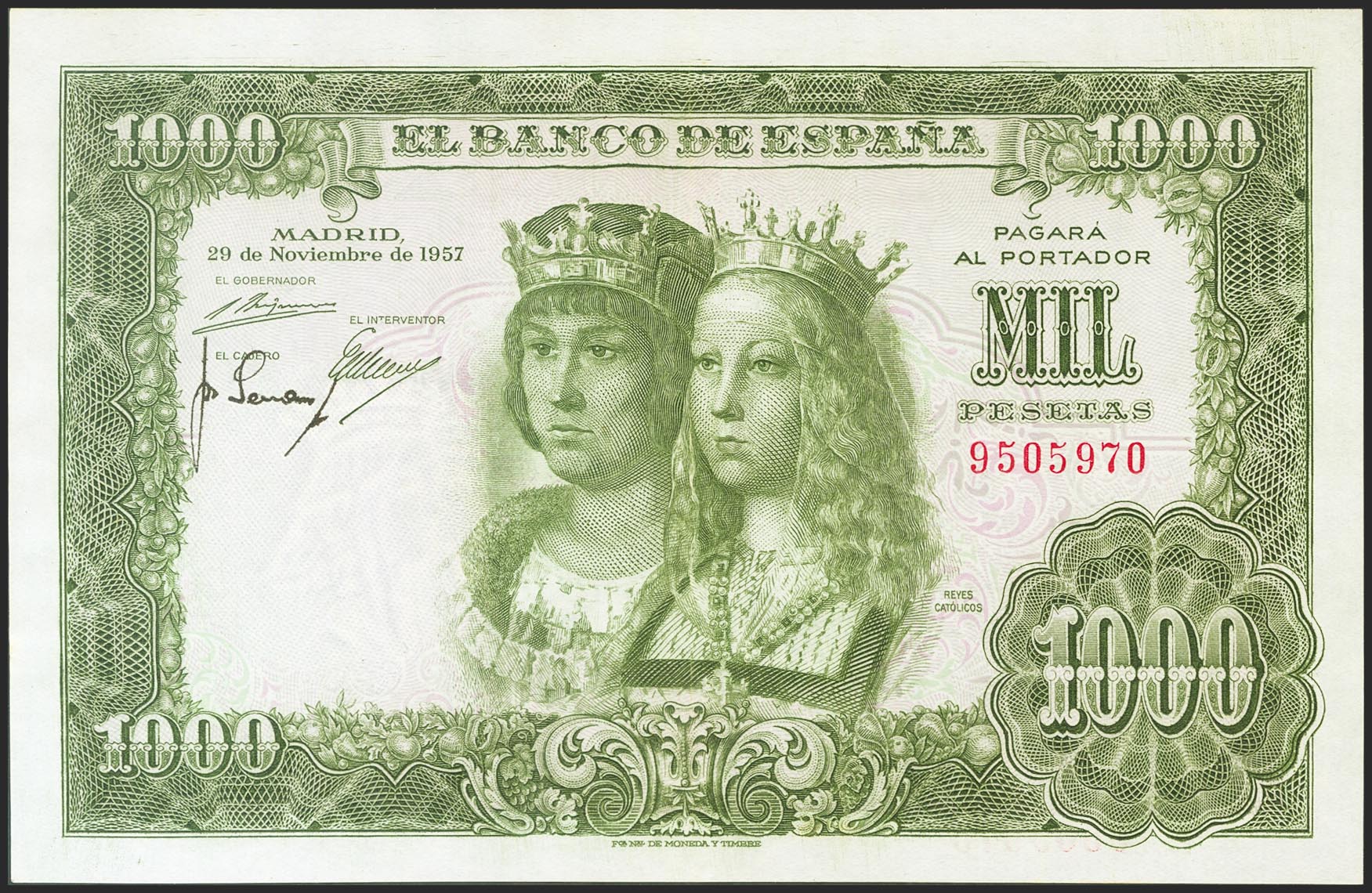 1000 Pesetas. November 29, 1957. No series. (Edifil 2021: 469). Unusual, it retains much of its original finish. Extremely Fine.