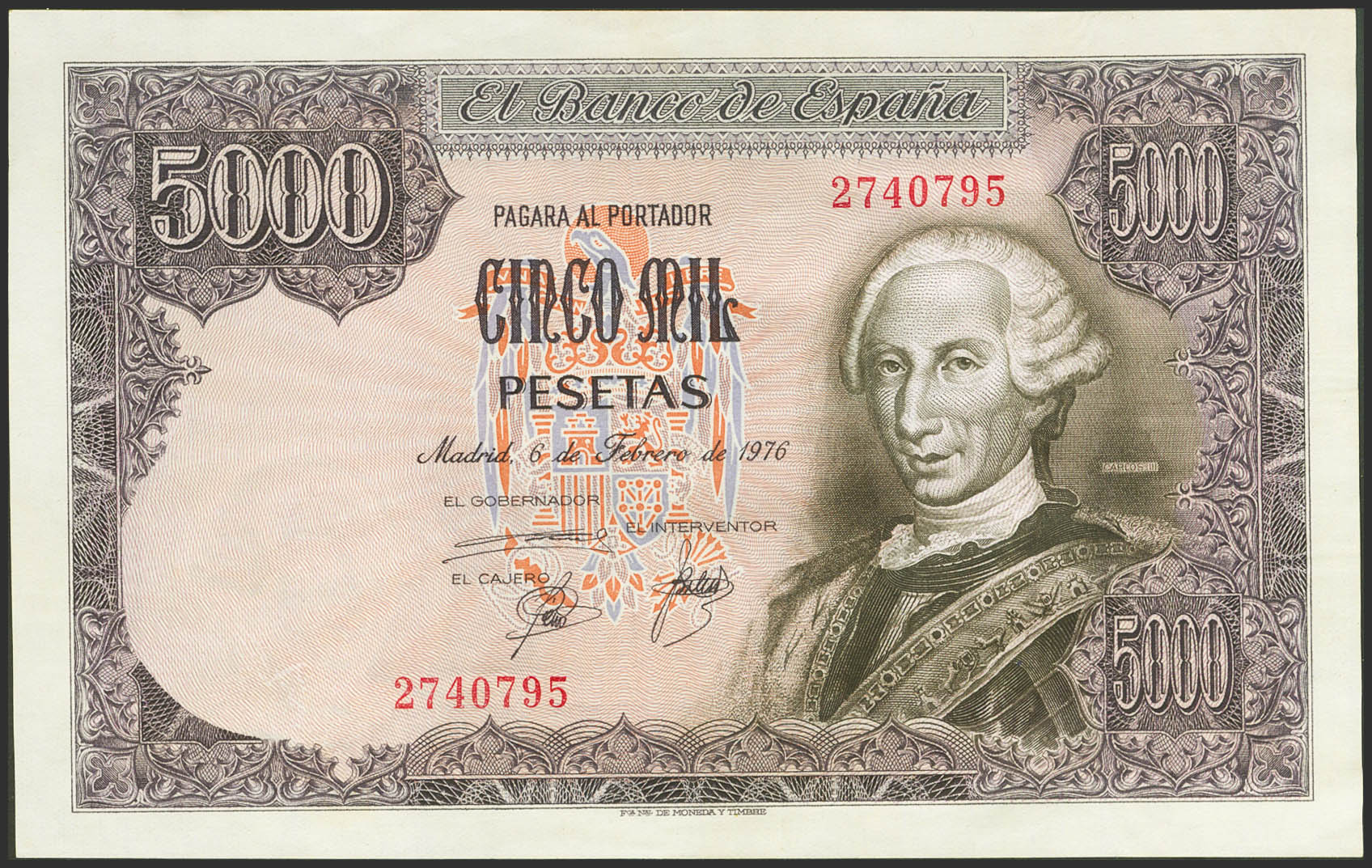 5000 Pesetas. February 6, 1976. No series. (Edifil 2017: 475). Almost Uncirculated.