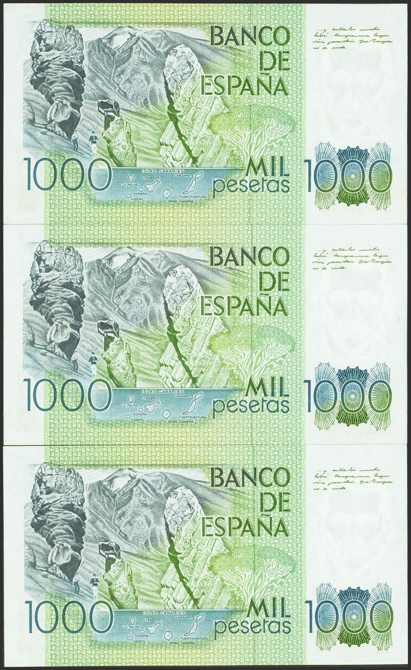 1000 Pesetas. October 23, 1979. Correlative trio. Series G. (Edifil 2023: 477a). Uncirculated.