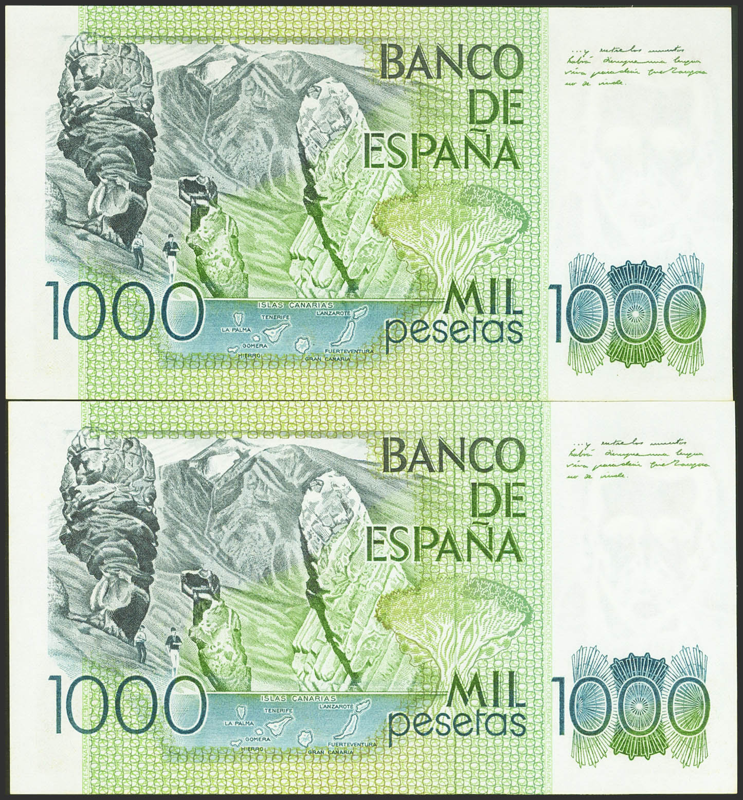 English 1000 Pesetas. October 23, 1979. Correlative couple. Series R. (Edifil 2023: 477a). Almost Uncirculated.