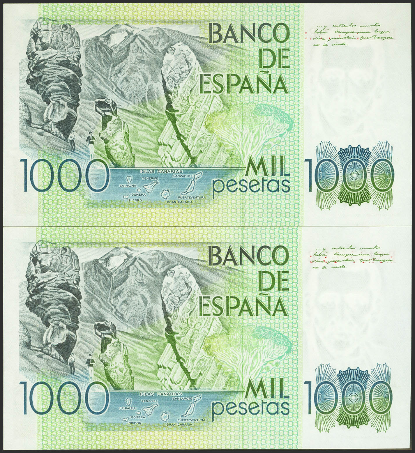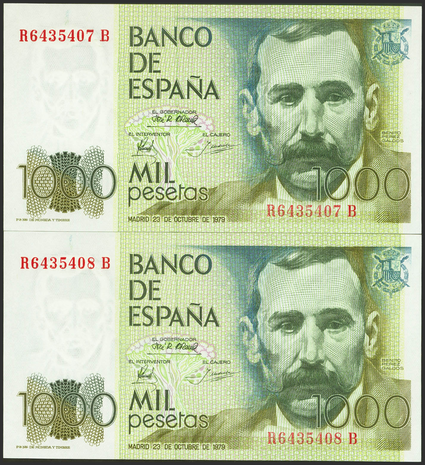 1000 Pesetas. October 23, 1979. Correlative couple. RB series. (Edifil 2023: 477a). Uncirculated.