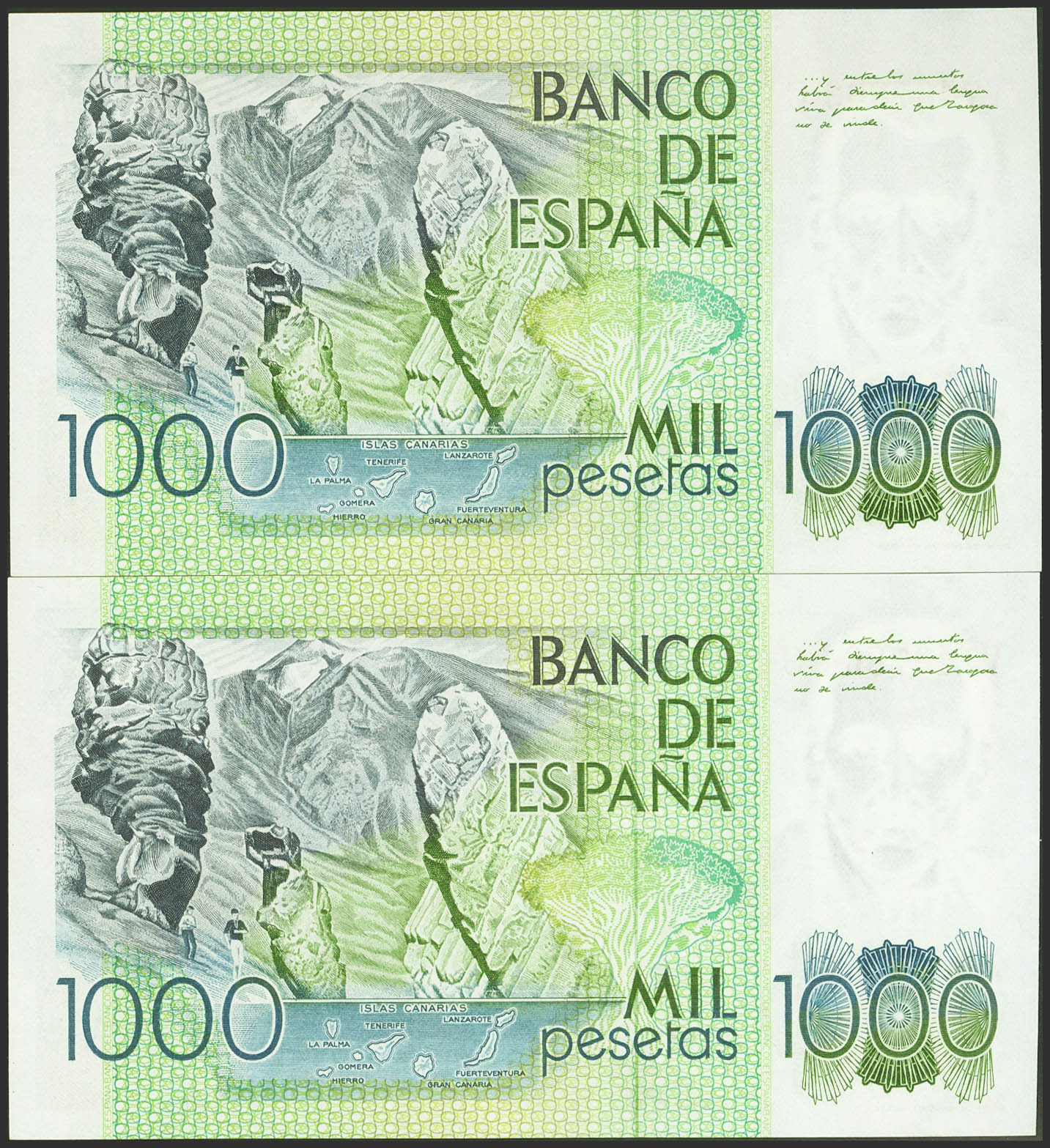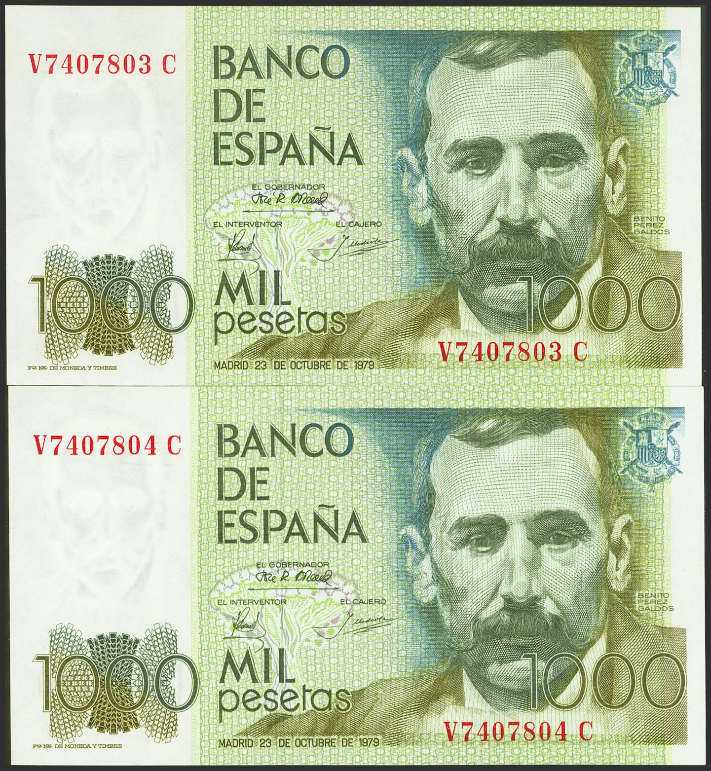 English 1000 Pesetas. October 23, 1979. Correlative couple. VC series. (Edifil 2023: 477a). Almost Uncirculated.