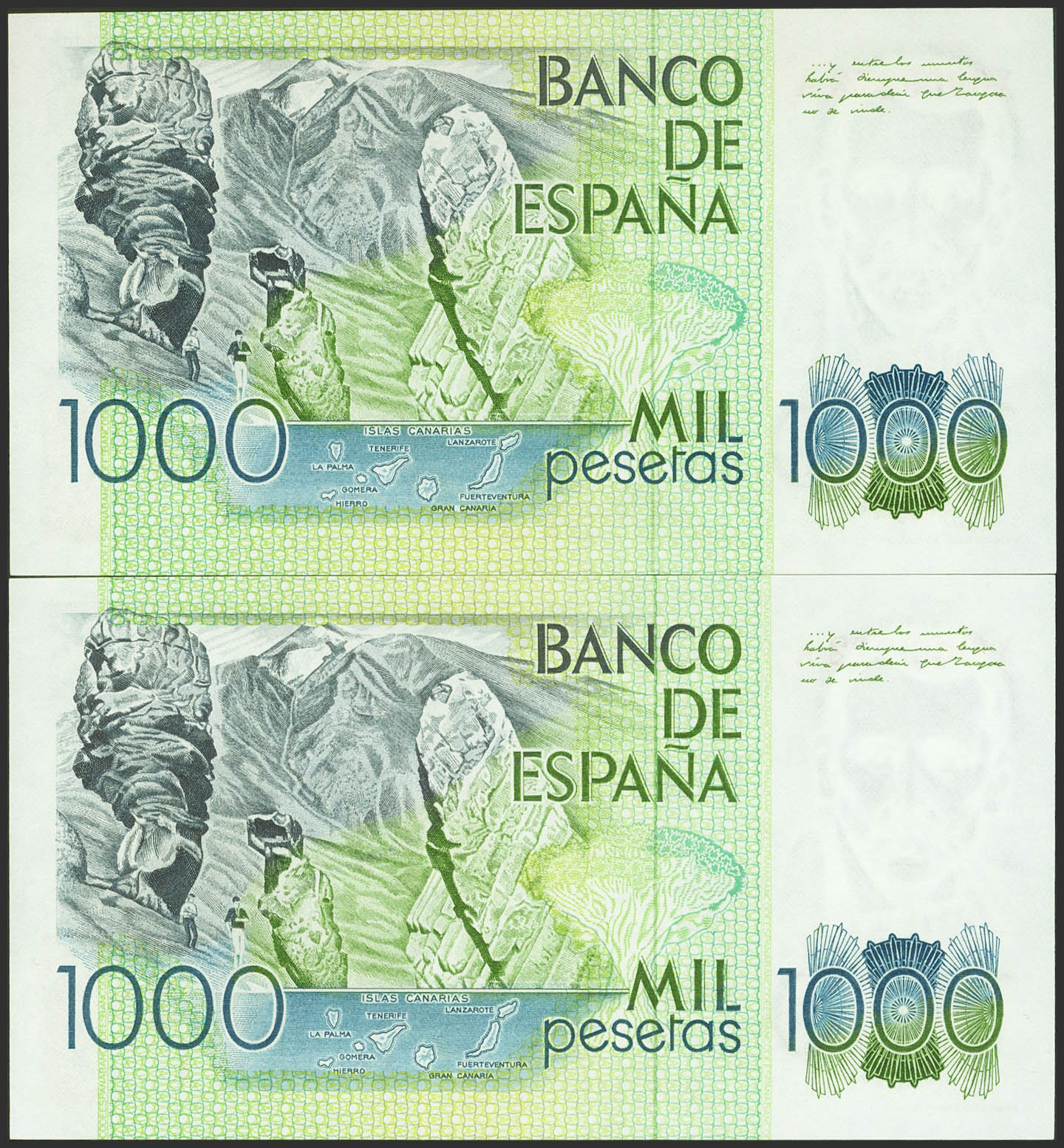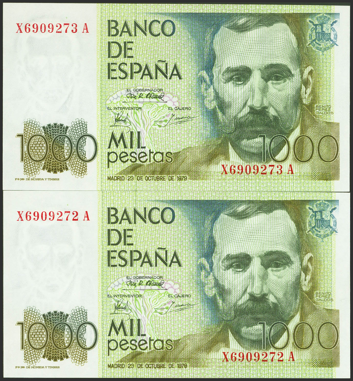 1000 Pesetas. October 23, 1979. Correlative couple. XA series. (Edifil 2023: 477a). Uncirculated.
