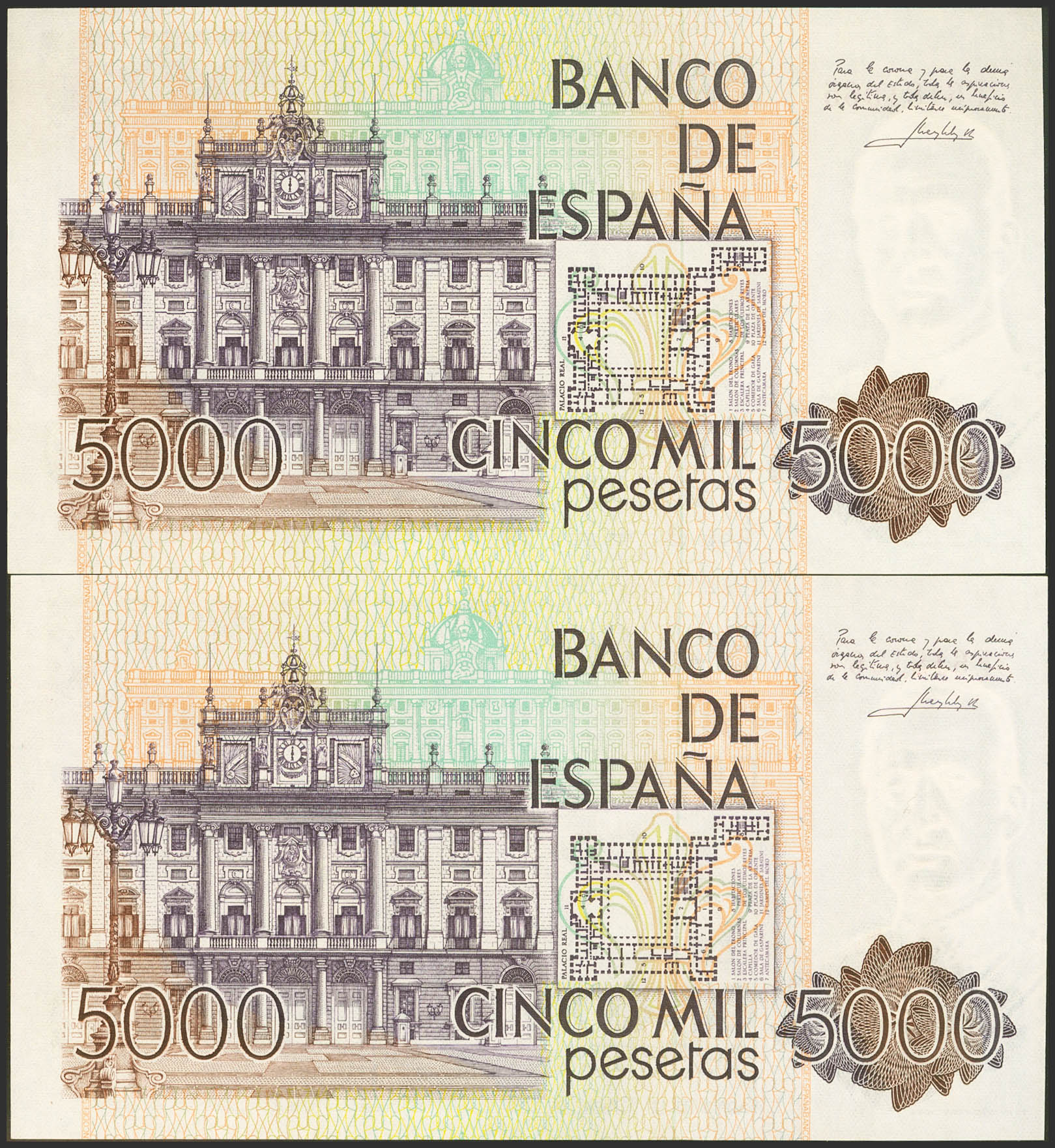 5000 Pesetas. October 23, 1979. Correlative couple. 3F series. (Edifil 2023: 478a). Uncirculated.