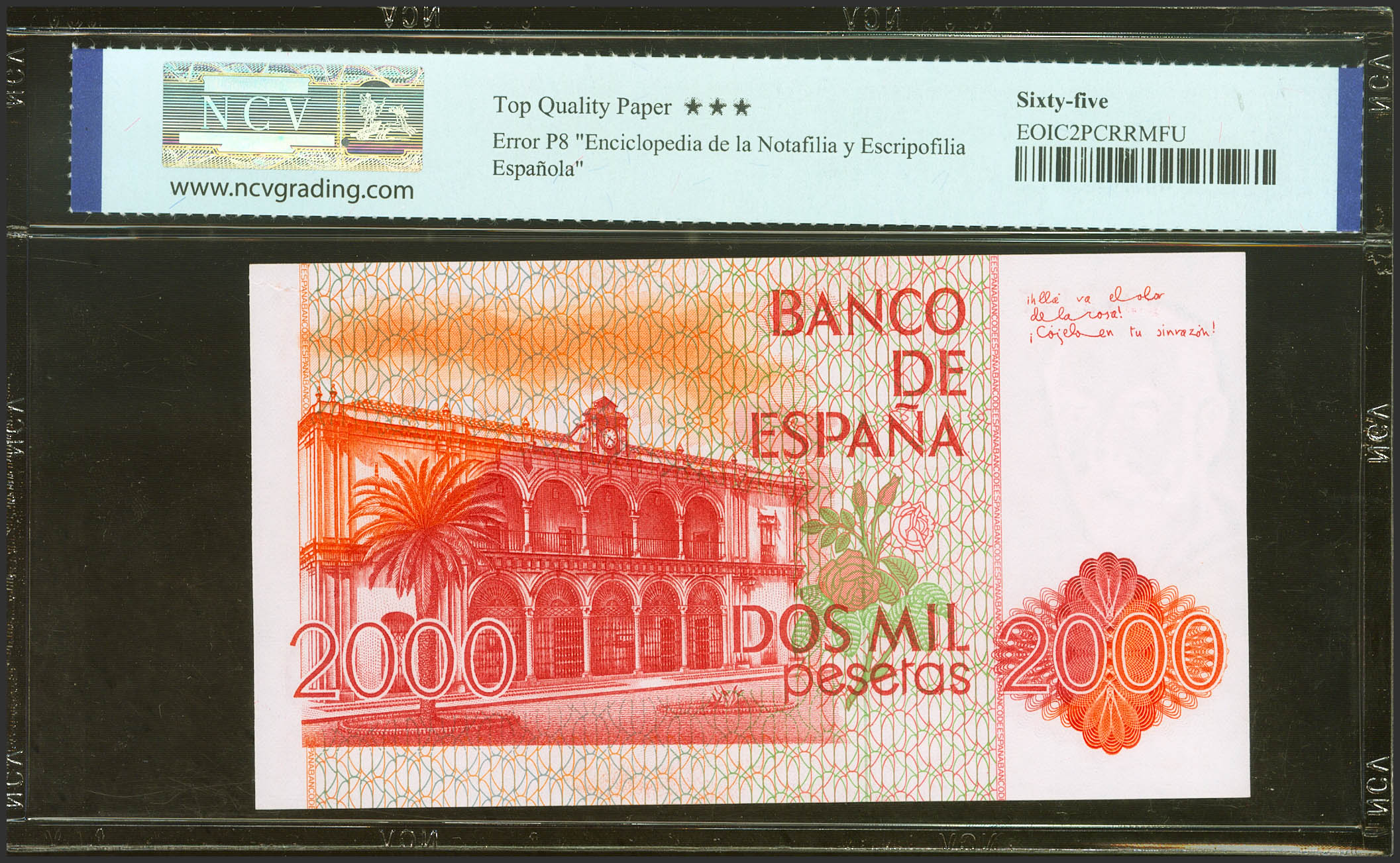 2000 Pesetas. July 22, 1980. No series. (Edifil 2023: 479, Pick: 159). Uncirculated. NCV65TQP package.