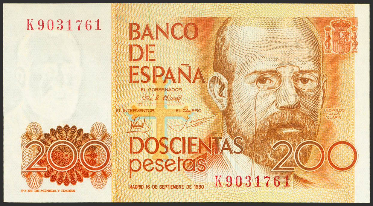 200 Pesetas. September 16, 1980. Series K. (Edifil 2023: 480a). Uncirculated.