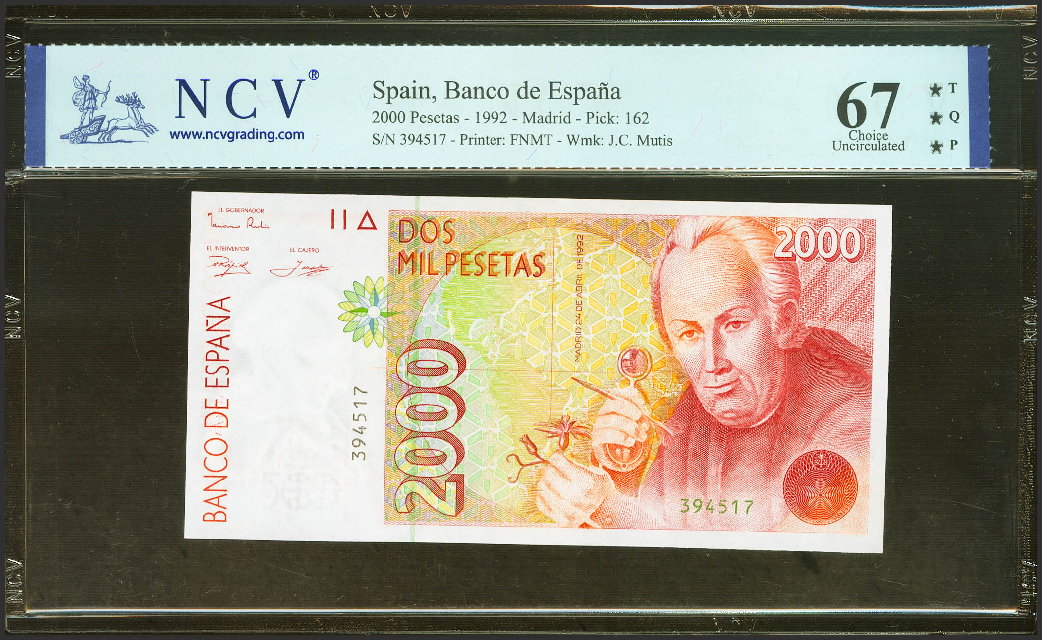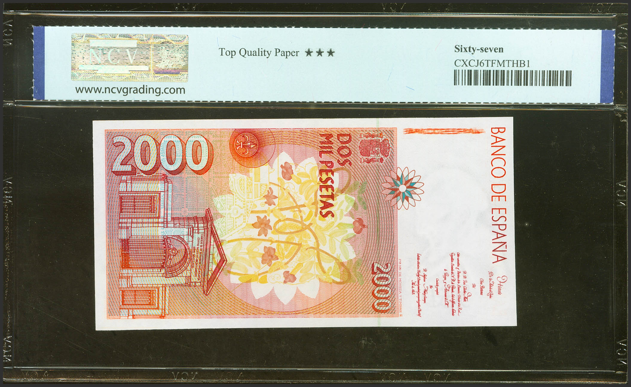 English 2000 Pesetas. April 24, 1992. No series. (Edifil 2023: 482, Pick: 162). Uncirculated. NCV67TQP package.