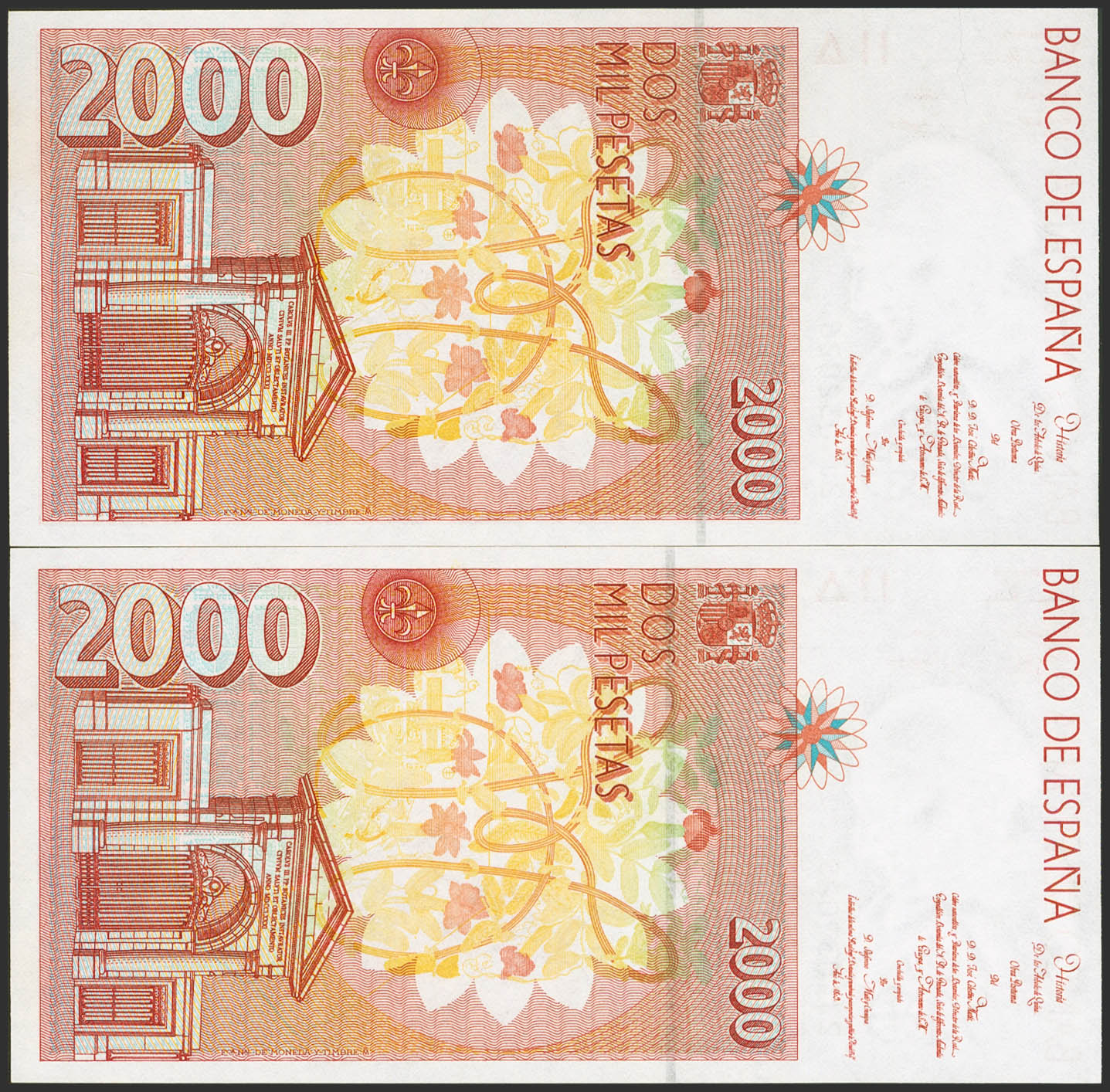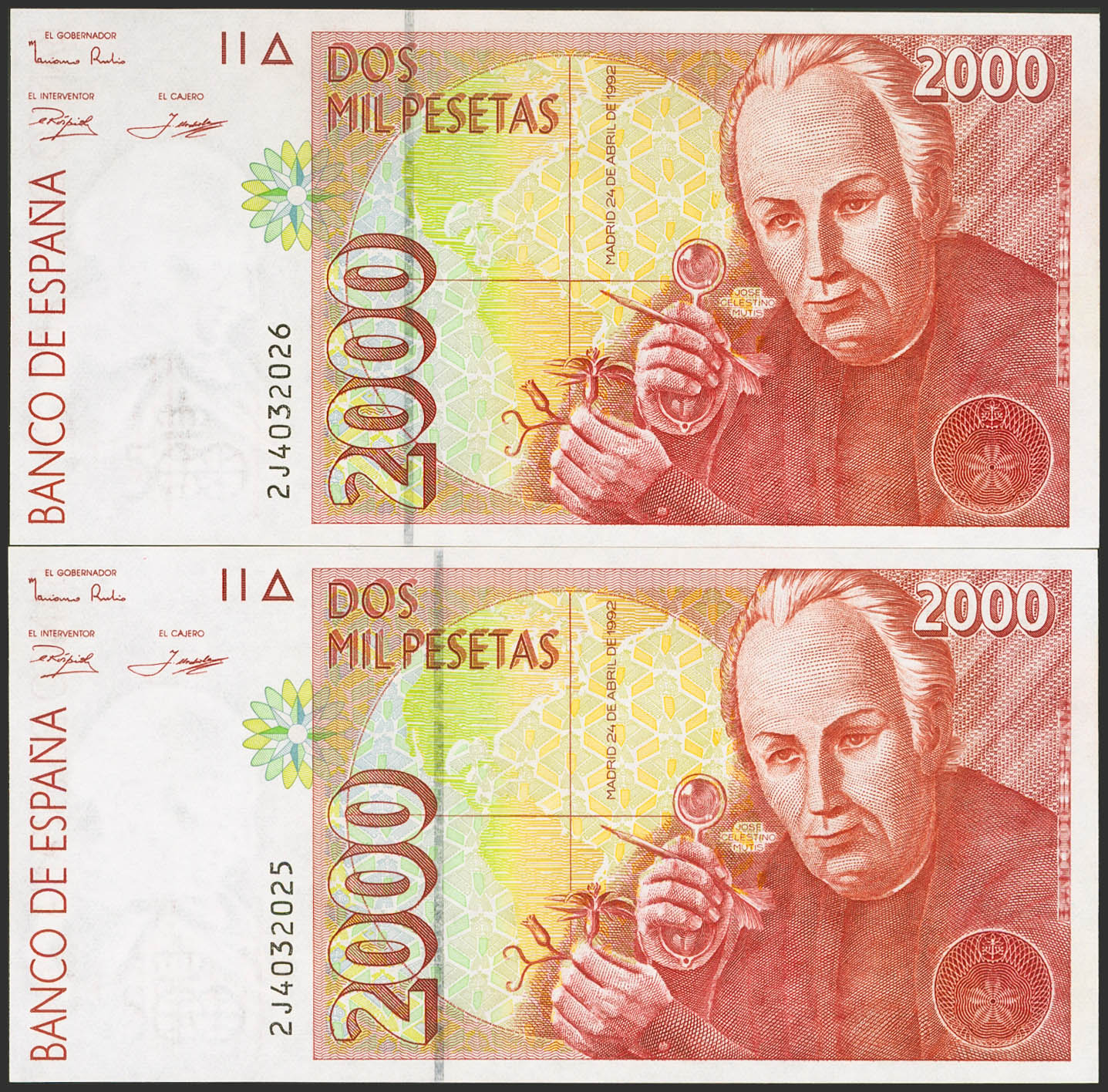 2000 Pesetas. April 24, 1992. Correlative couple. 2J series. (Edifil 2023: 482Aa). Uncirculated