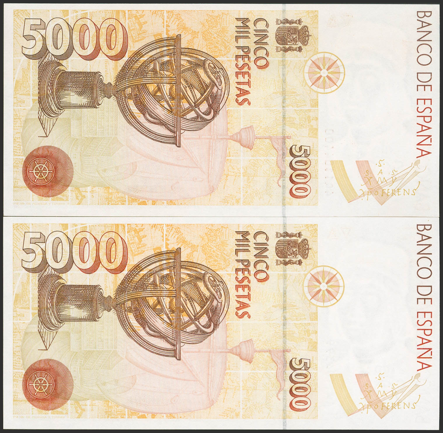 5000 Pesetas. October 12, 1992. Correlative couple. 4Q series. (Edifil 2023: 484a). Uncirculated.