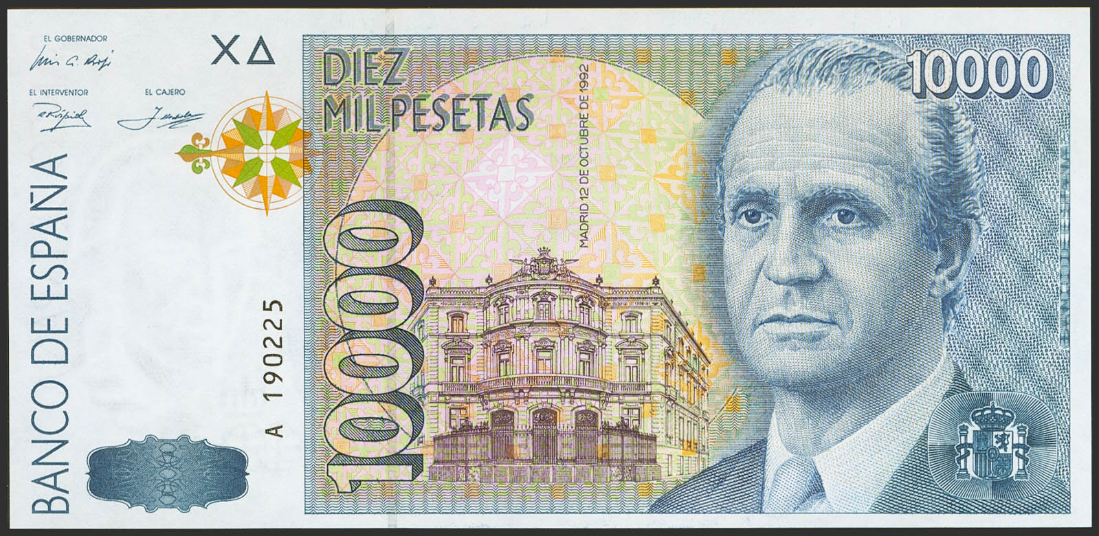 10,000 Pesetas. October 12, 1992. Series A. (Edifil 2021: 485a). Uncirculated.